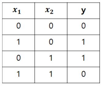 진리표를 보시면, x1과 x2가 서로 다를 때만 1을 출력합니다.