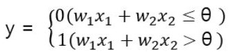 뉴런에서 보내온 신호의 총합이 정해진 한계(임계값 θ:Threshold)를 넘어설 때 1을 출력합니다.