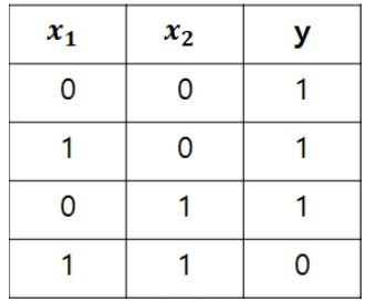 동작은 AND 게이트의 출력의 반대입니다. 따라서 모두 1일 때 0, 나머지는 1을 출력합니다.
