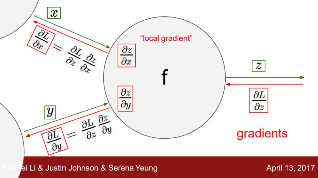 Forward propagation 과정에서 input에 대한 gradient(local gradient)를 구할 수 있고,