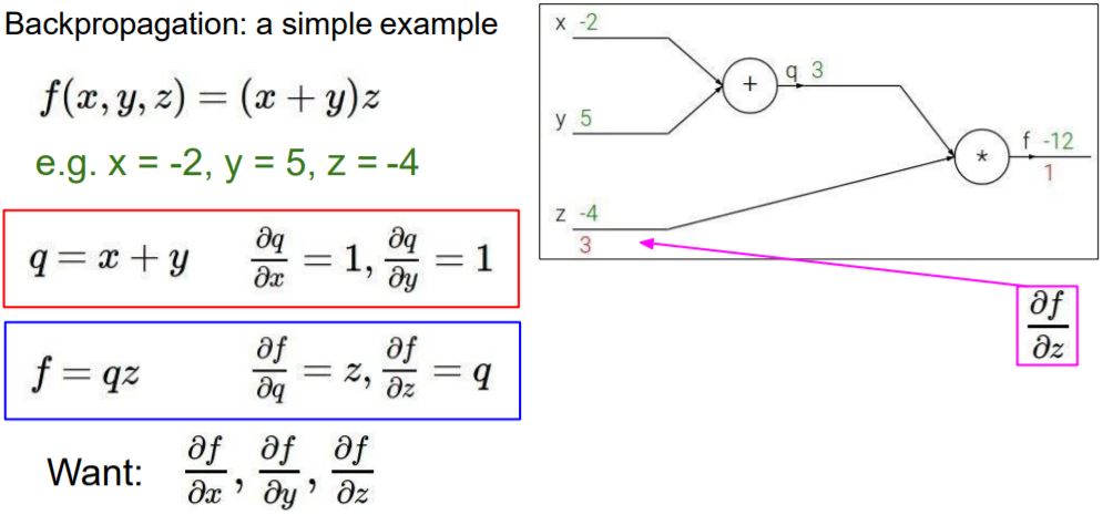 최종적으로 구하고자 하는 것은 x,y,z값의 f(loss)에 대한 편미분, 즉 x,y,z값이 f에 미치는 영향입니다.